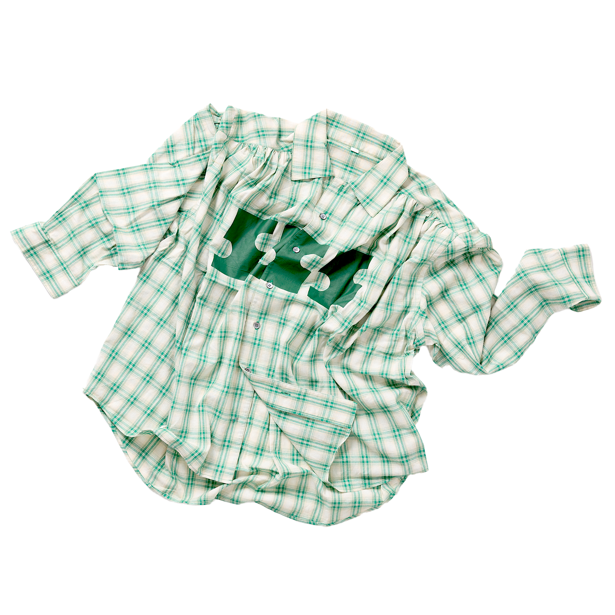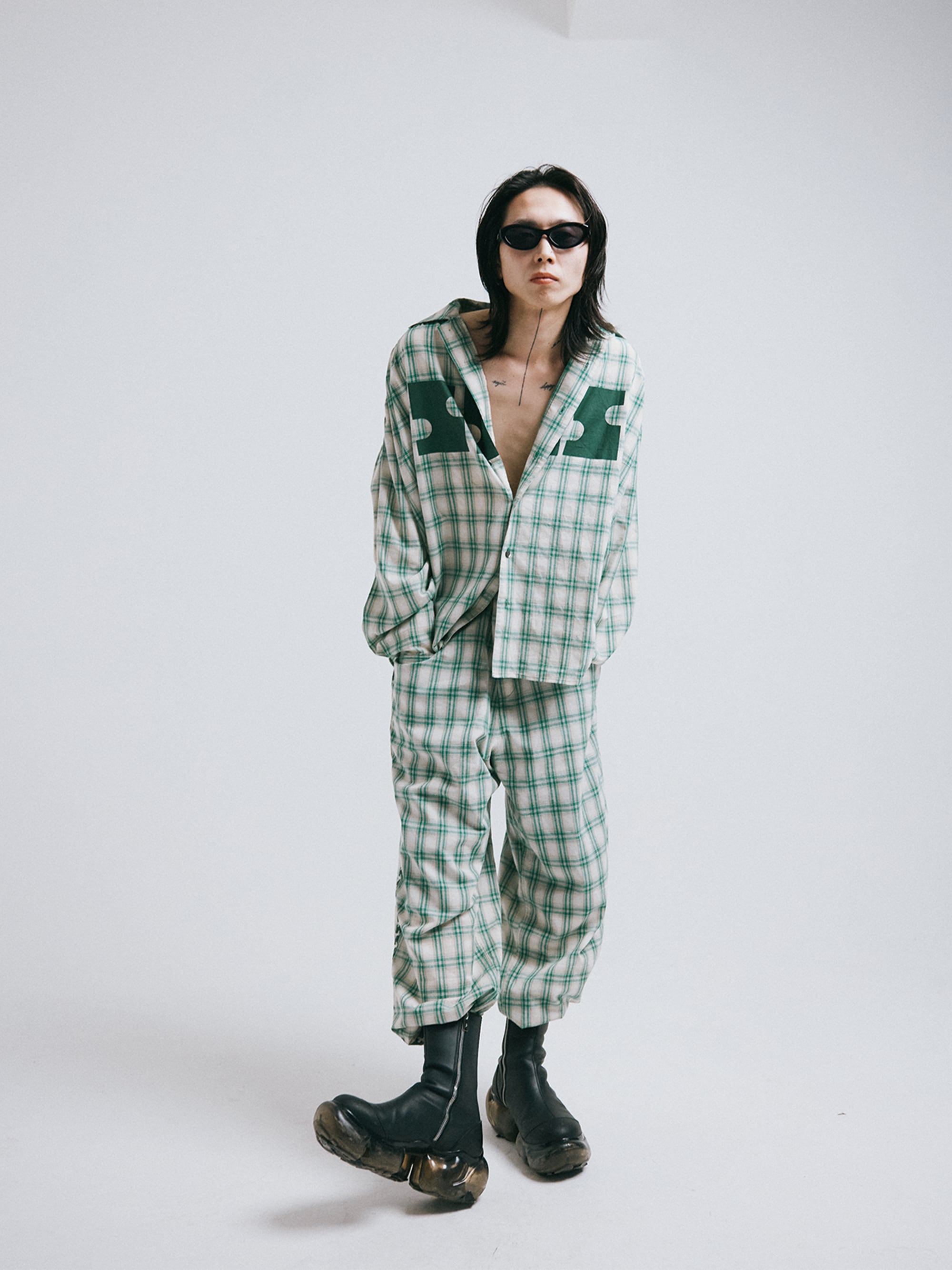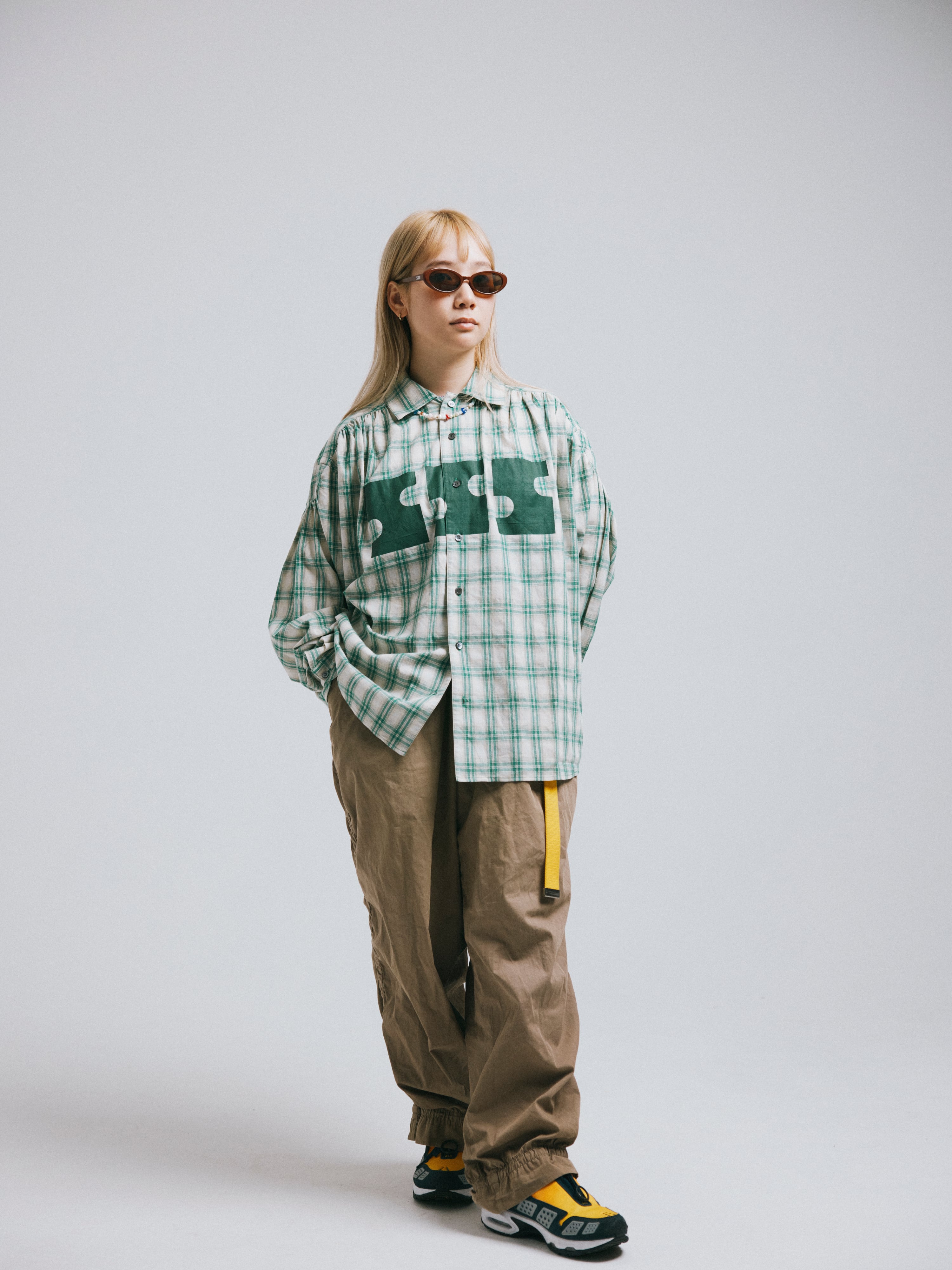 パターンチェックをベースに構築したオーバーサイズシャツ。