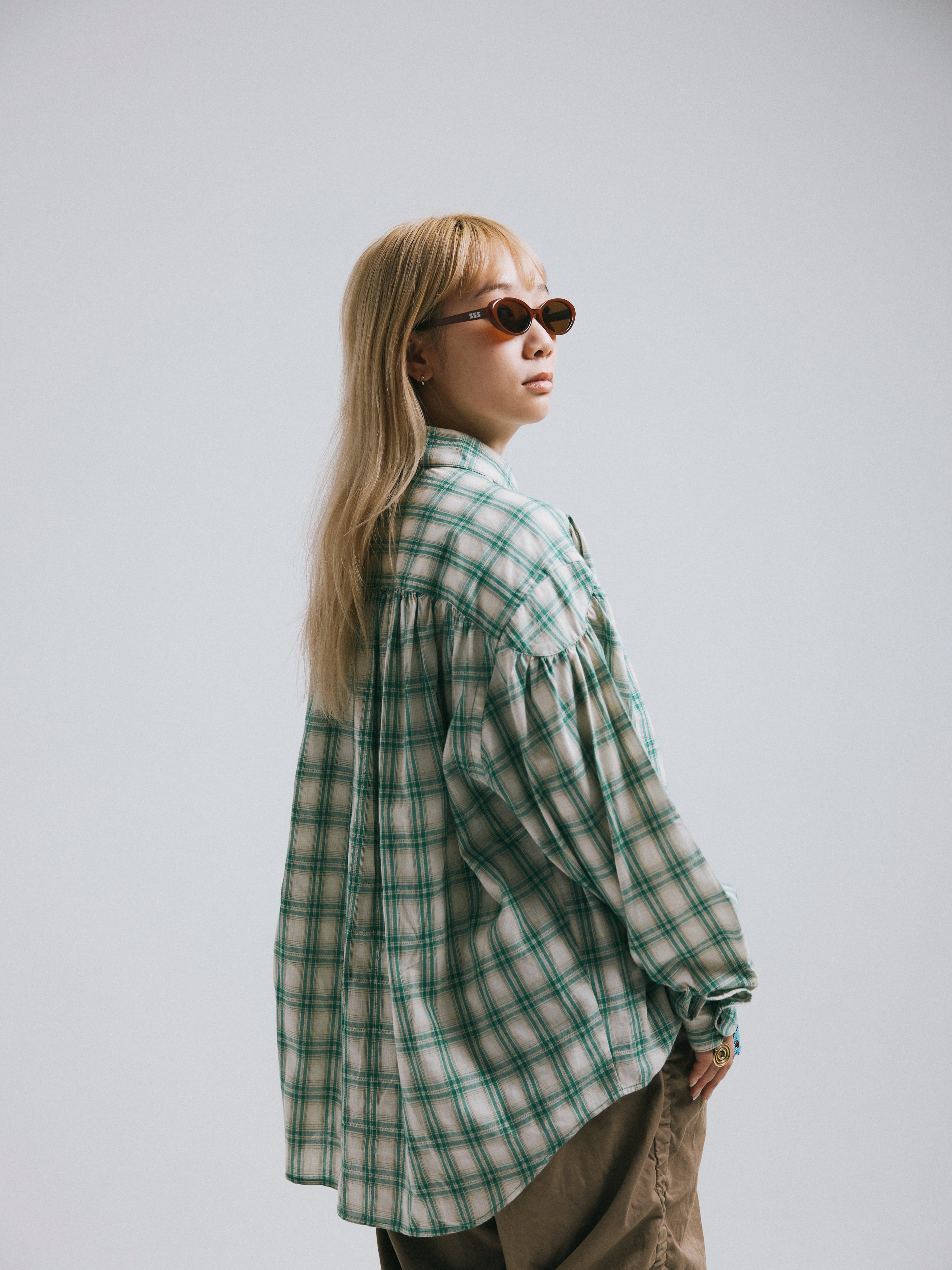 pattern check shirt GREEN(TAX IN)