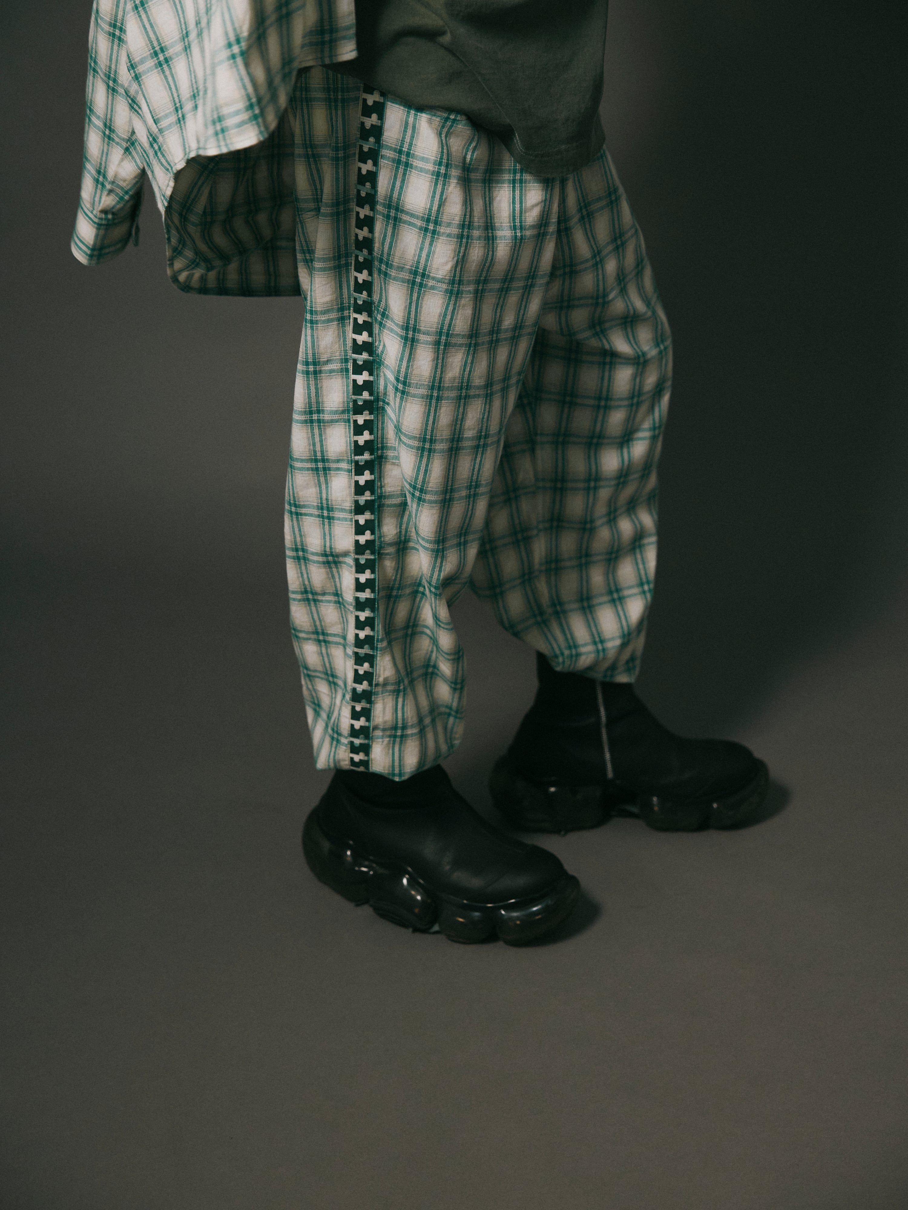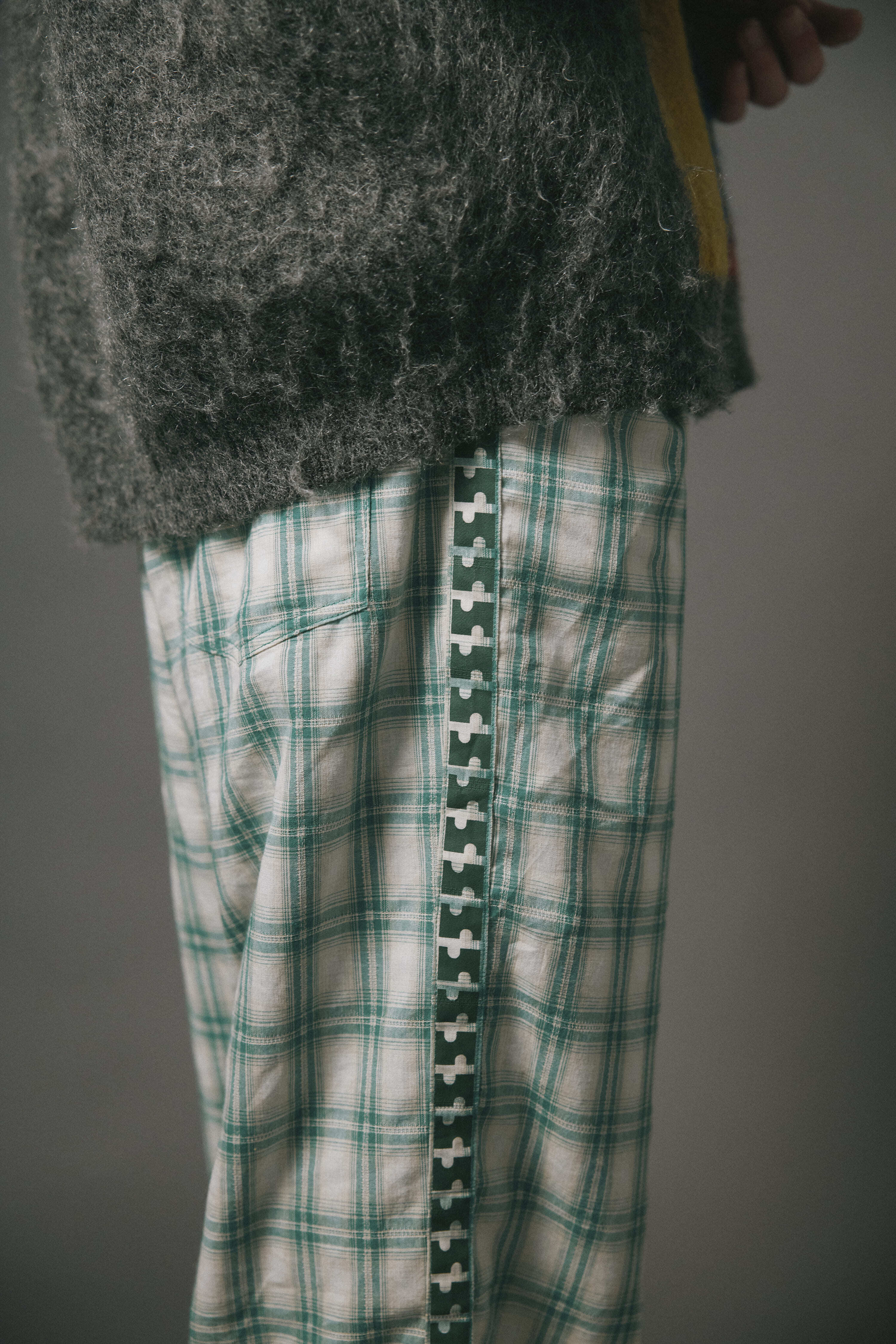 パターンチェックをベースに構築したパンツ。